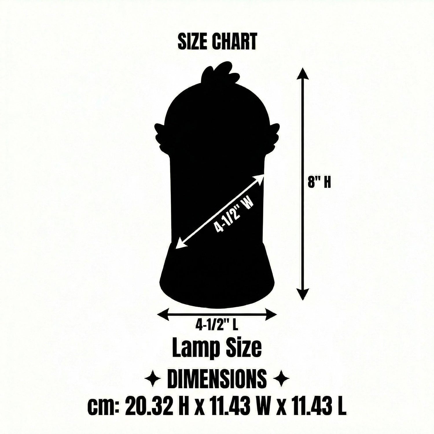 cm: 22.86 H x 11.43 W x 11.43 L