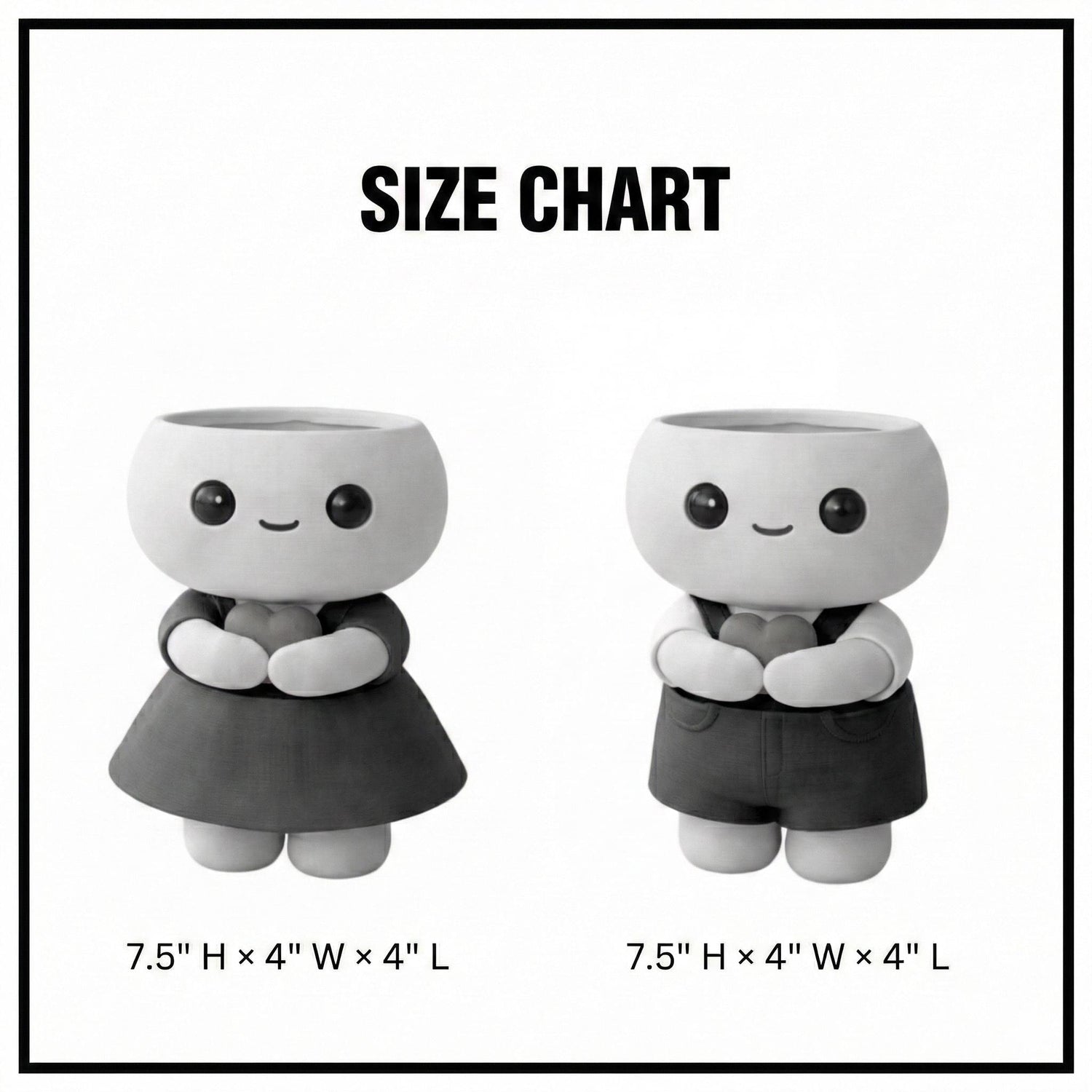 Designed as a playful blend of modern 3D-printed design and cozy decor, these vases are ideal for shelves, desks, nightstands, or gifting. The sweet character design — holding a heart — symbolizes love, connection, and joy, making it especially meaningful for Valentine's Day, anniversaries, weddings, or housewarmings.