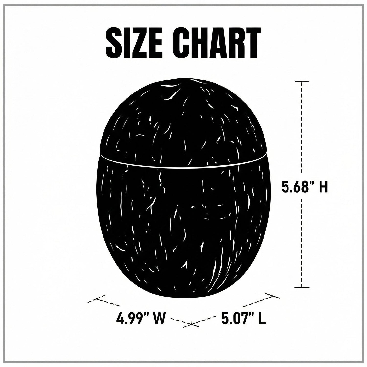inches: 4.99" W x 5.07" L x 5.68" H