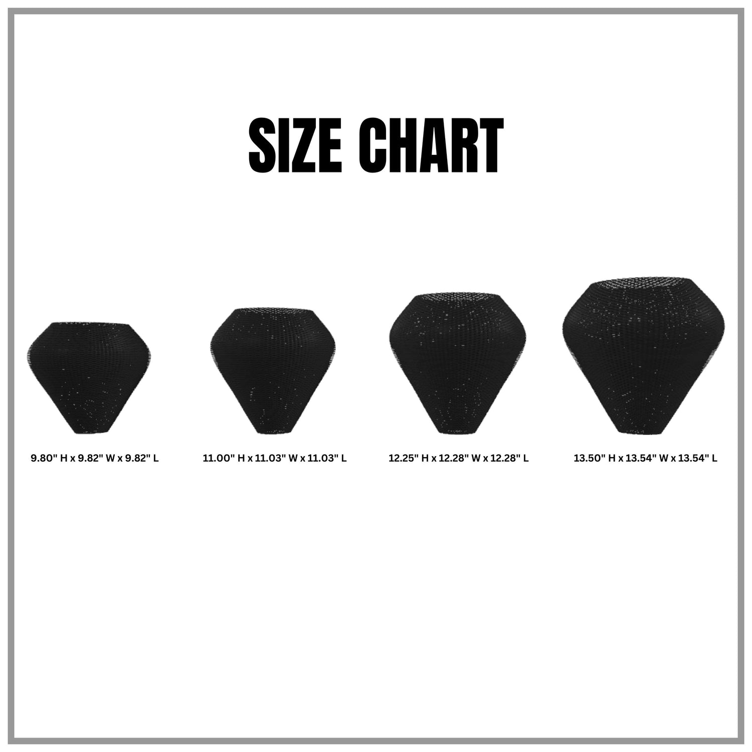 inches: 13.50 " H x 13.54" W x 13.54" L