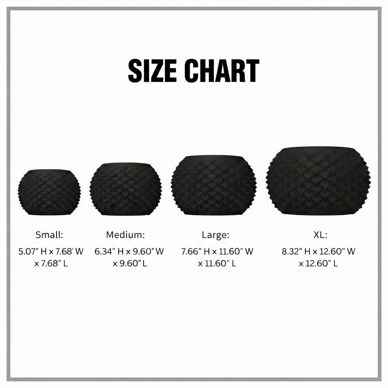 Inches: 5.07" H × 7.68" W × 7.68" L