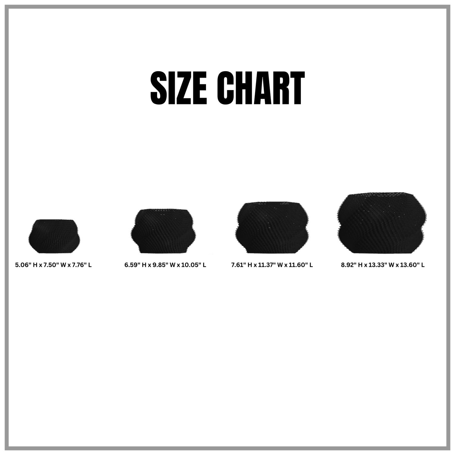 Size assembled (XL): In inches: 8.92" H x 13.33" W x 13.60" L