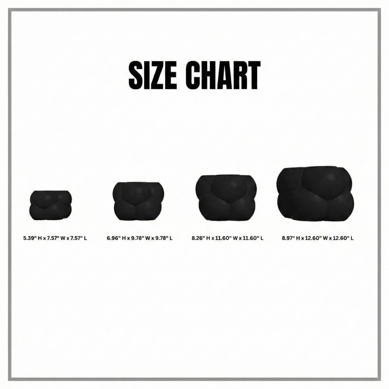 inches: 8.97" H x 12.60" W x 12.60" L